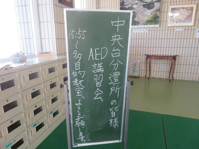そして、今日はこれから水泳指導に向けて、職員のAED講習会です。