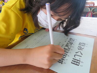 本校の夏のイベント。「夏みくじ」三冊読んだら、300ページ読んだら図書館でおみくじ!