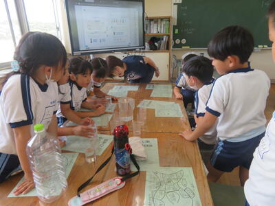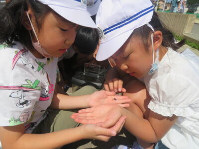 2年生はプールに虫取り、「水のかさ」の学習。盛りだくさんの一日!