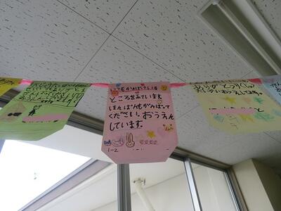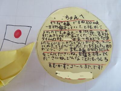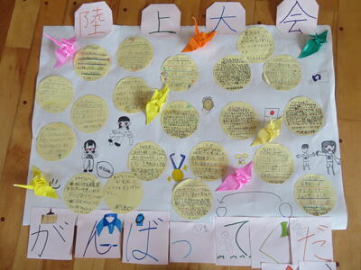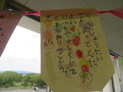 「りくじょうたいかい がんばってください いつもやさしくしてくれて ありがとう」