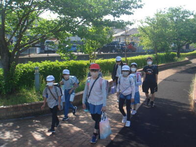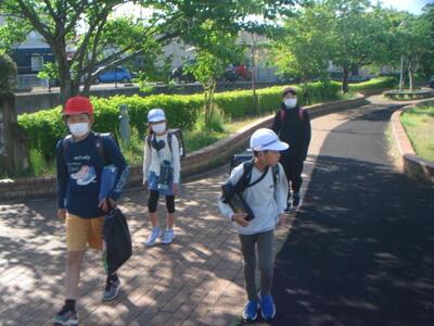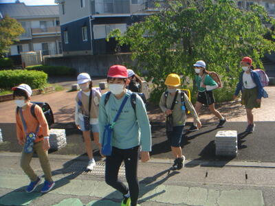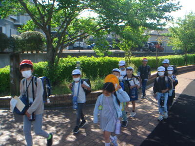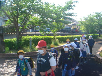 東側から来る登校班の皆さんは、班長を先頭にきちんと並んで登校できていました。(^^)