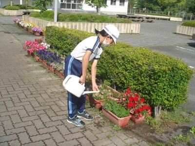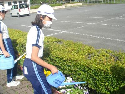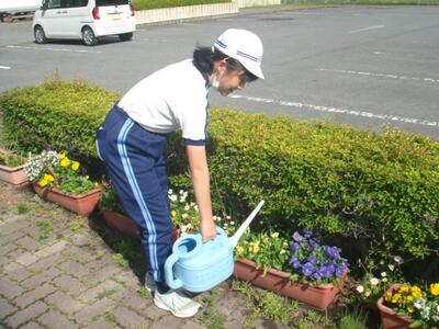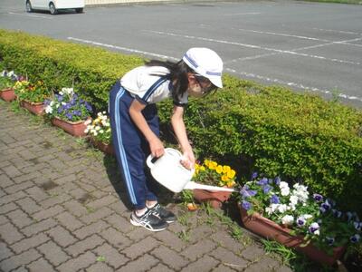 環境委員会の皆さんは、毎朝交代で花の水やりをやってくれています。