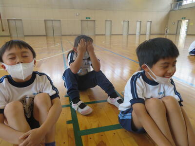 次のゲームは「太鼓の数を聞いて集まるゲーム」。鳴らした数だけ、集まって座ります。