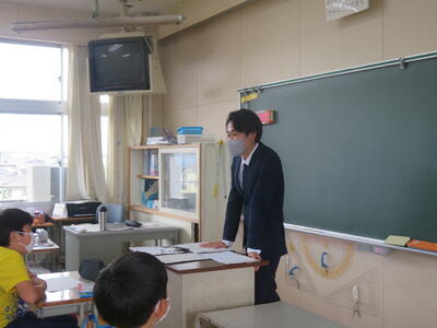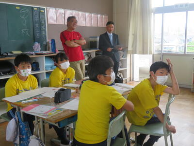 校長先生も担任の先生も参観して、授業後には振り返りを、実習生と共に。