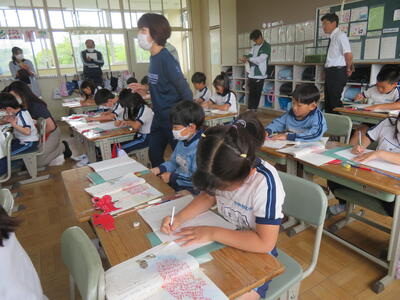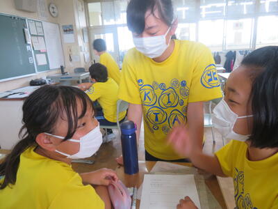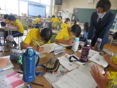 指示をした後、子供たちが正しく活動できているか先生が机間を歩き見守り声をかけます。