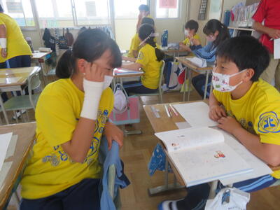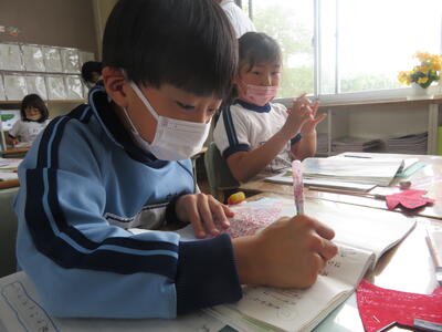 音読をしたり、ワークシートに書いたりしながら理解を深めていきました。