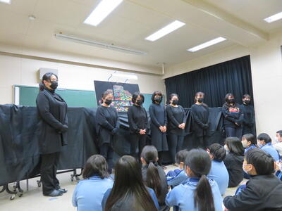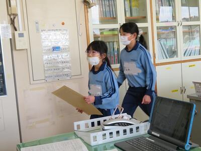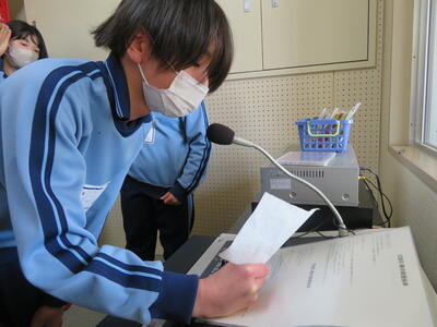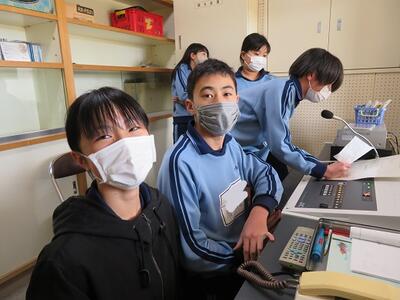 今、お昼の放送の時間は6年生から在校生へのメッセージが放送されています。