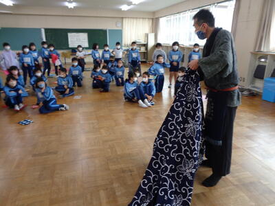 変幻自在に形を変える風呂敷の姿に子供たちは大喜び。