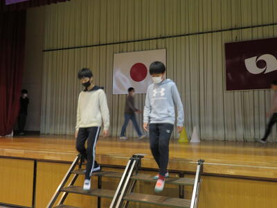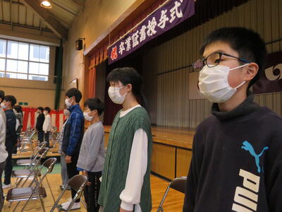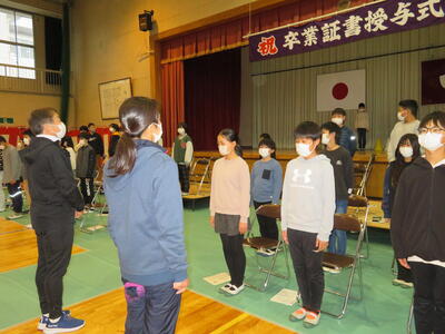3年生、また校長先生のところへ。「1年間、校長先生でいてくれたので表彰します。」