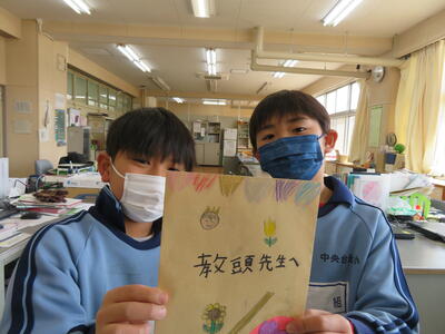 普段、印刷などのお手伝いをしてくれているサポートスタッフの先生にお礼のお手紙を持ってきてくれました。