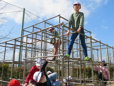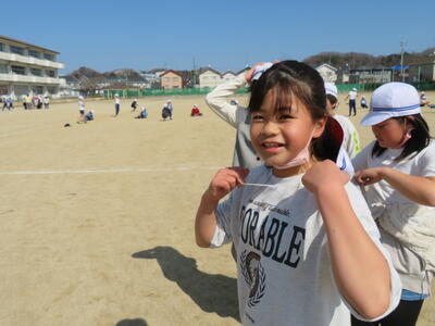 「暑い暑い!」上着を脱ぎたくなるほど夢中になって汗をかいて遊んでいました。