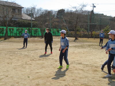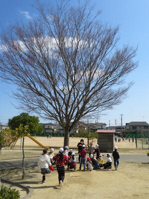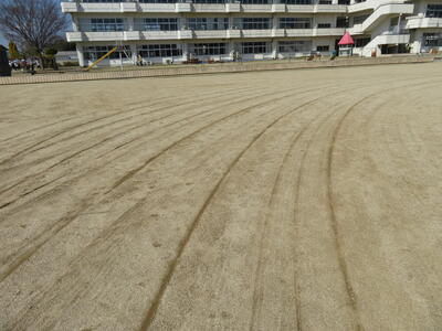 校庭。怪我なくふかふかの地面で安全に遊べるように、前日に整地して。