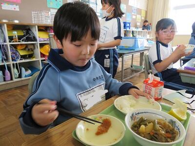 恐る恐る食べている子もいましたが鮭がおいしくて、完食する子が多かったです。