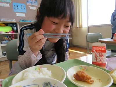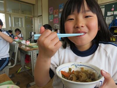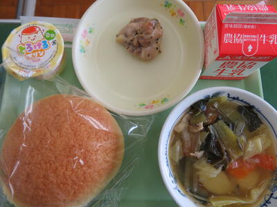 小学校での給食も残すところ、あと3回。これは3月15日(水)の給食、おいしいメロンパンの日。