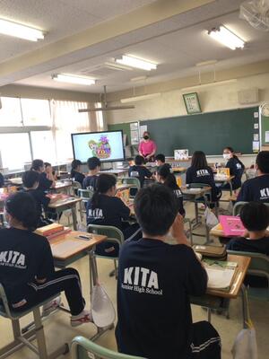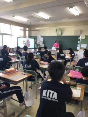 2021年6月17日 18時08分⑴ 今週はALTが来校し、英語の授業を楽しく行っています。1年生も英語に抵抗なく馴染んでいました。