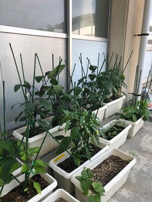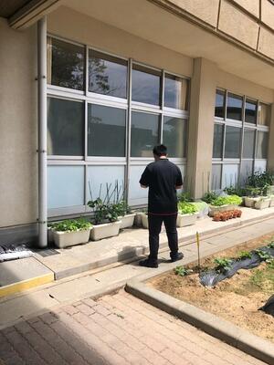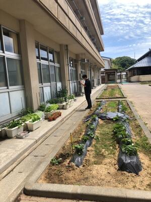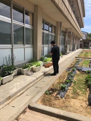 ⑶ 生徒が植えた野菜を、教員が密かに写真を撮って記録に残したり、生徒が帰った後に手入れをしています。