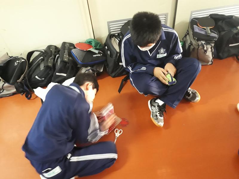 これは・・・卓球のラケットにラバーを貼っているんですね。(秘密要素はありませんでした)