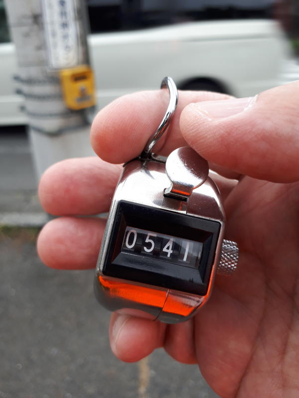 今朝、学校の正門を通過した生徒の数をカチャカチャで数えてみました。