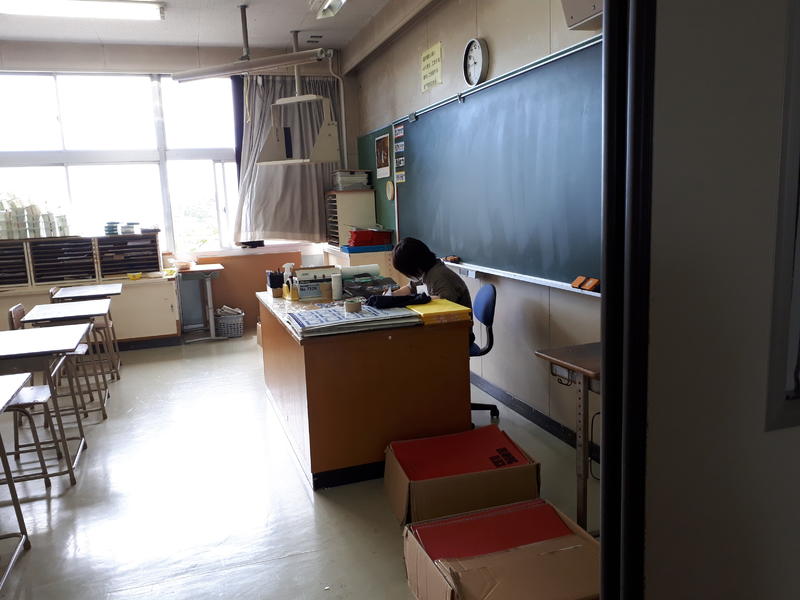 こちらは美術室。ここでも黙々と作業が行われています。作業内容はヒ・ミ・ツ