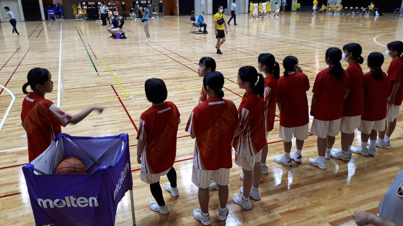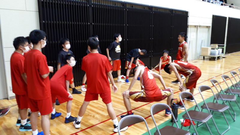 試合に先立つコート練習です。3年生の手際よい指示が飛びます。