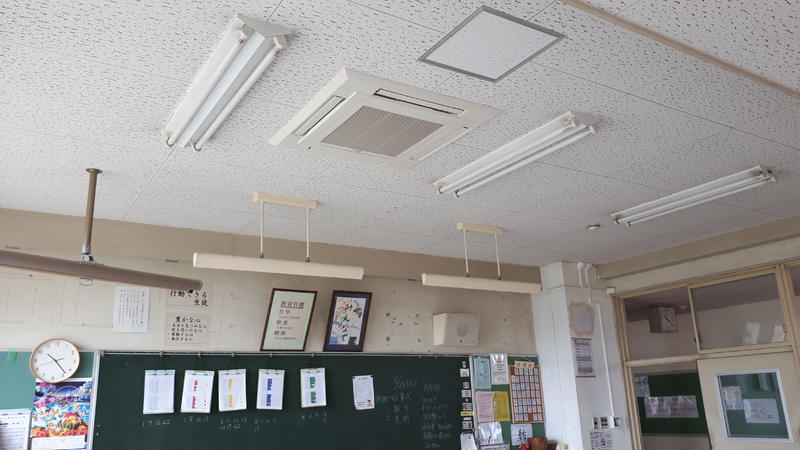各教室のエアコン室内機は設置が完了しましたが、それを動かすための電気を送る変電設備の工事が始まります。