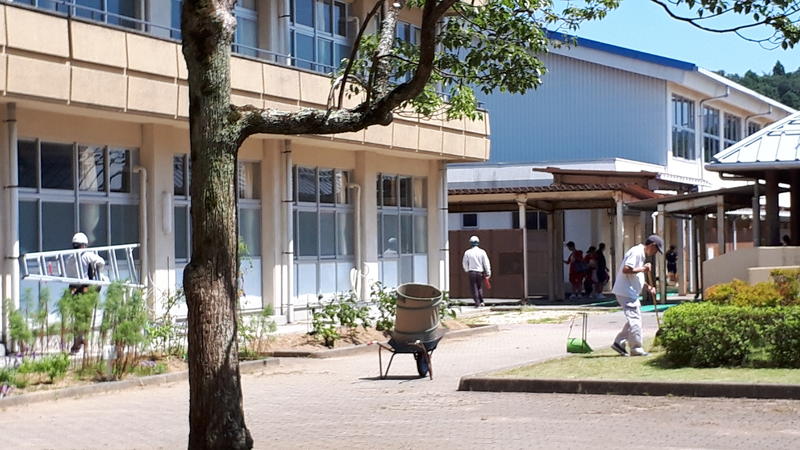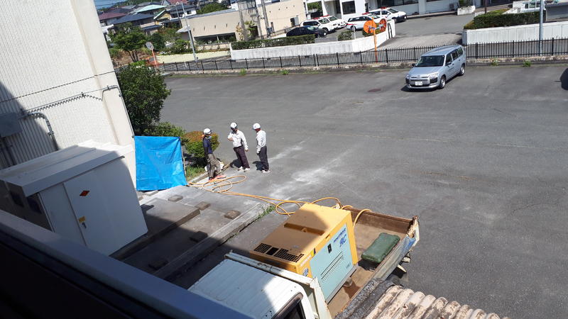 そして校舎横を移動しているのは、エアコン関連工事の業者さんです。その先には・・・