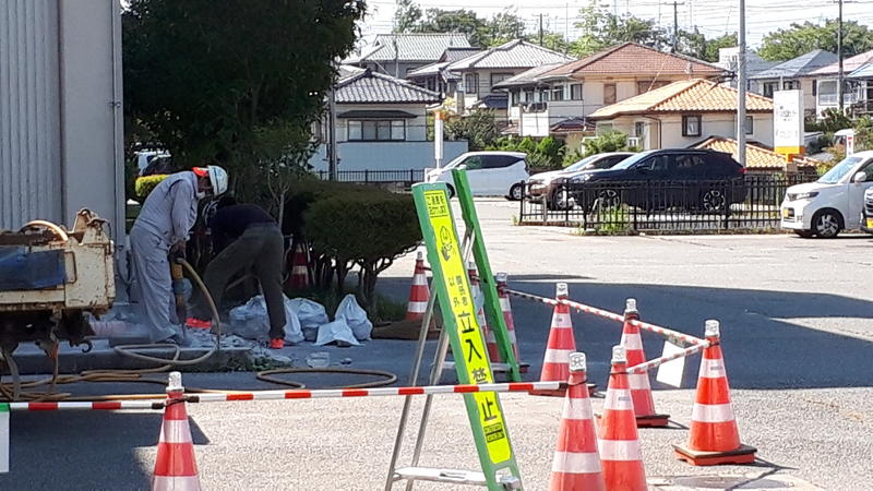 削岩機でガガガガガ~とコンクリートを砕いています。