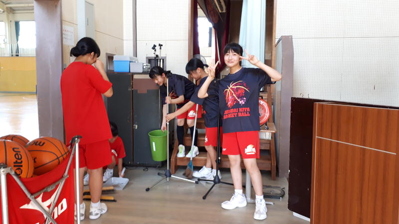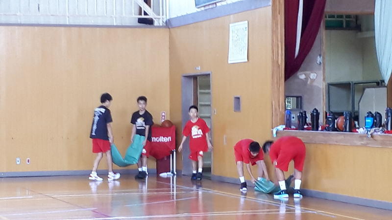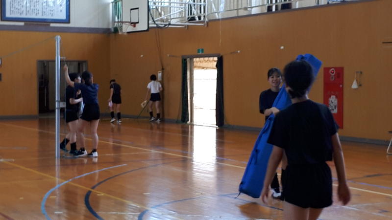 バレーボール部の練習が終了したようです。ネット等を片付けています。