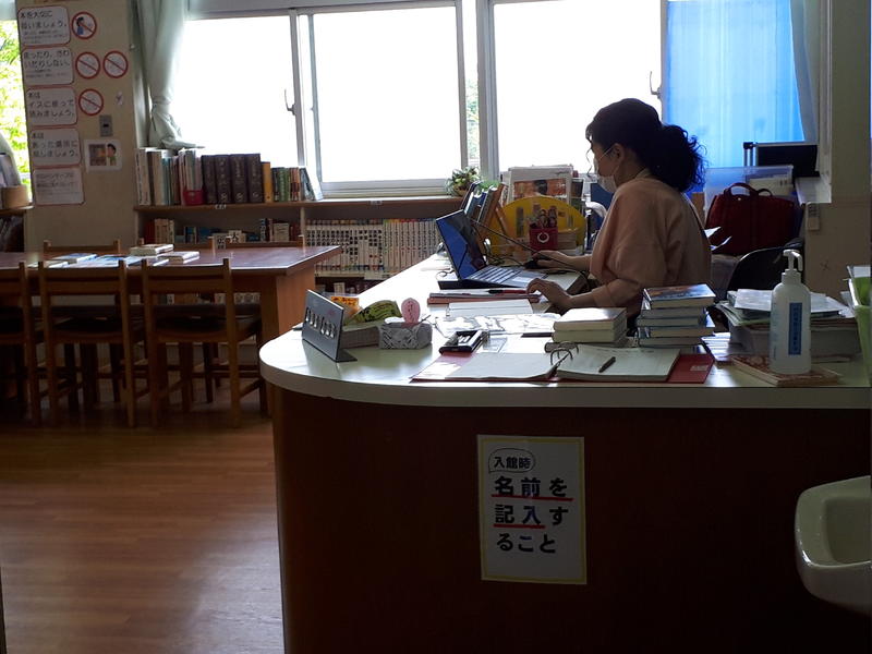 学校図書館の貸し出し準備をしたり・・・