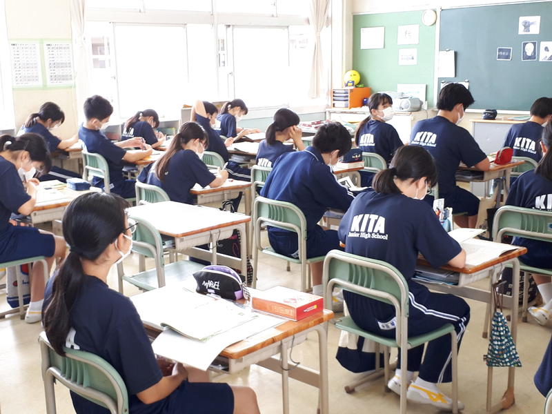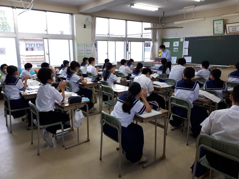 何の変哲(へんてつ)もない普通の教室内です。落ち着いた授業態度です。