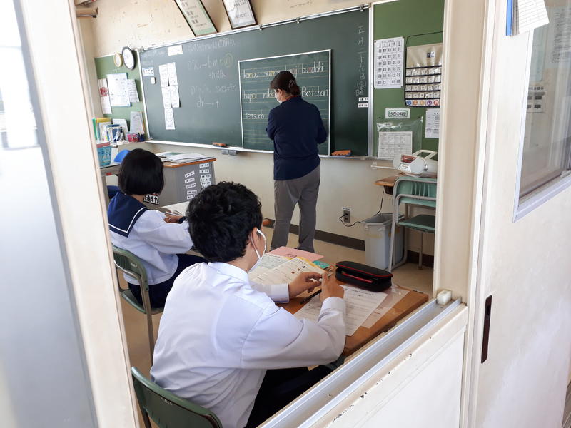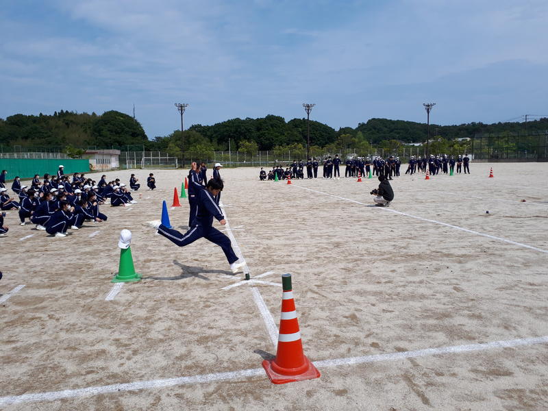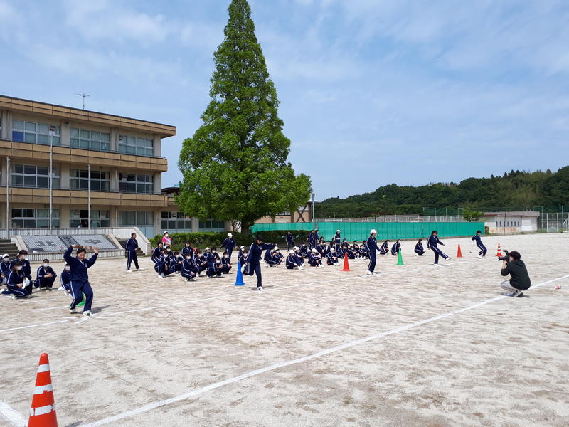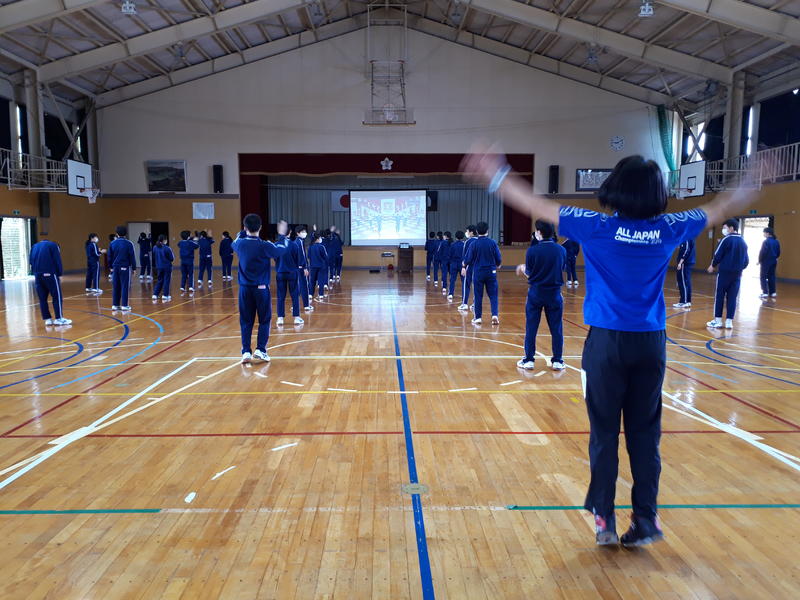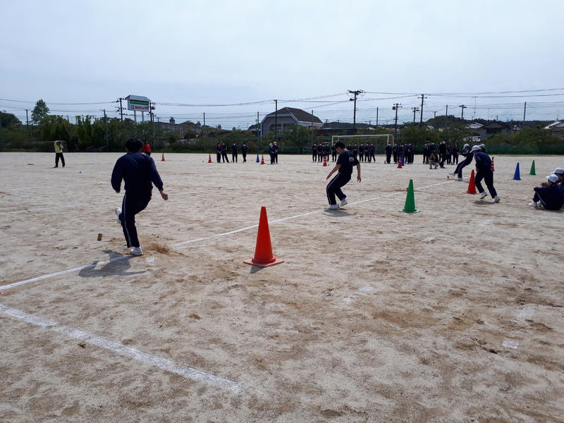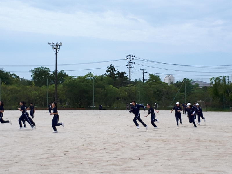 こちらは体育ですね。「社会的距離」が確保されている様子です。