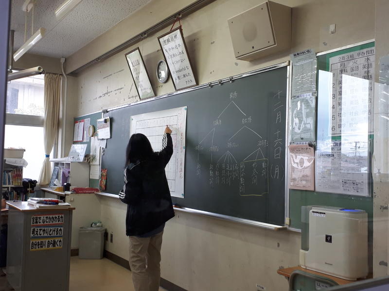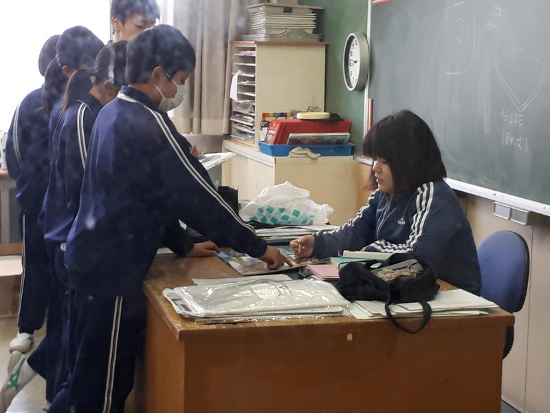 黒板には「2nー1」とあります。経済活動の授業かな?