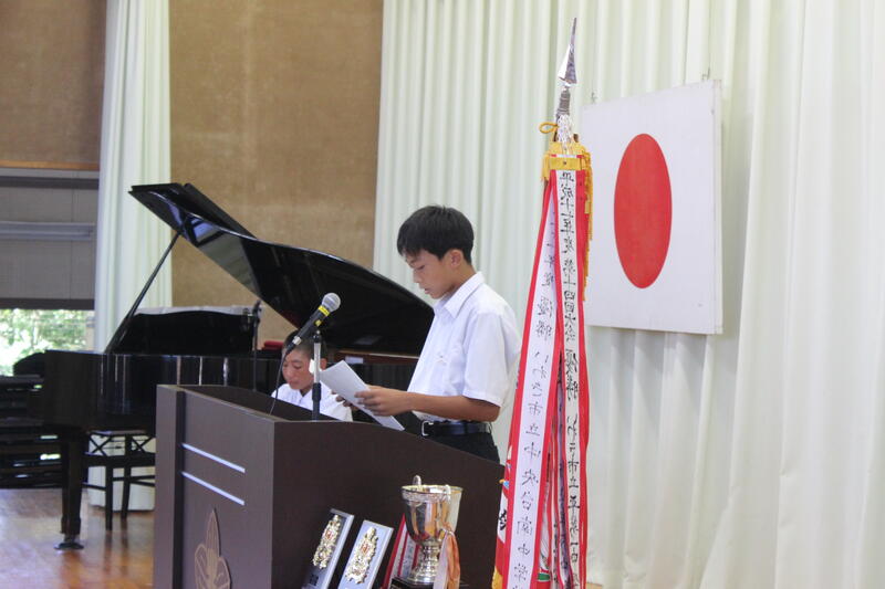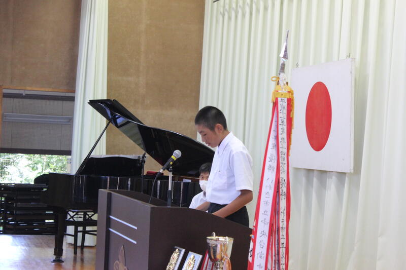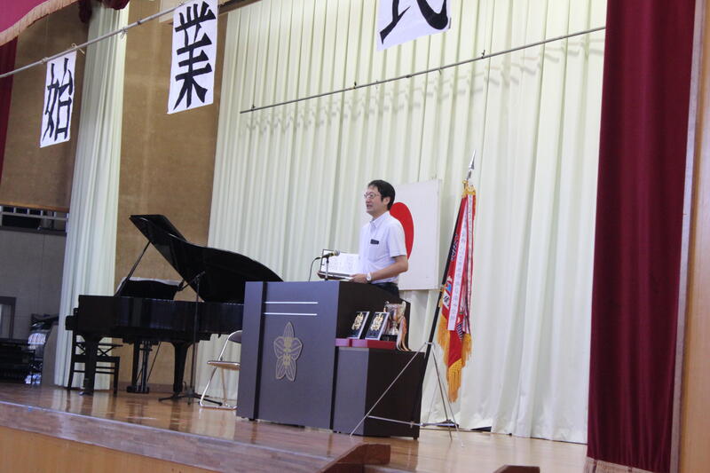初めに校長先生から「1学期に身につけた知識や技能を活用し、2学期の更なる飛躍に繋げて欲しい」との式辞がありました。
