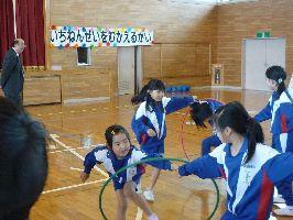全校生が体育館に集まり、今月の歌を歌います。
