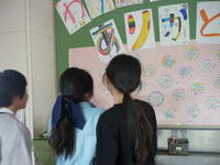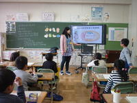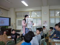 cool,strong,funnyなどのカードを使って「Who is ~?」「He is ~.」と答える学習をしていました。「cute」のカードが出た時に男の子の名前が紹介されみんな爆笑。次に「kind」のカードが出ると担任の名前が出て来てみんな納得の様子。