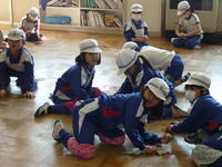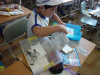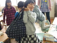 妊娠したお母さんのおなかはどれくらいの重さ(7kg)になるのか、ペットボトルの入った袋を持ってみて、その重さにびっくりしていました。それだけお母さんは苦労していたんだということを実感したようです。