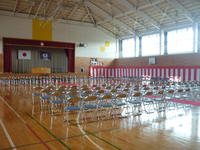 体育館にも保護者、来賓用のいすが並びいよいよ卒業式という感じがしてきました。