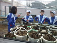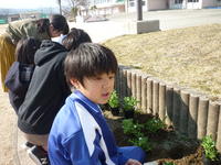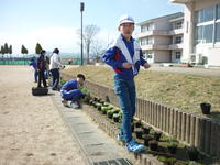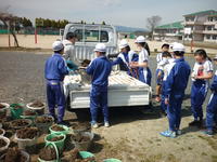 ボランティア委員会は花の苗を花壇に植えてくれています。
