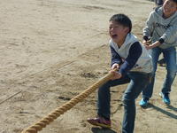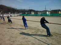 運動委員会は体育倉庫にあった綱引き用の綱を出し二組に分かれておためしの綱引き中。来年度5月の運動会で実施されるかも??