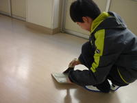 保健委員会は校内の美化活動。自分で気付いて職員室前のゴミを掃除してくれました。