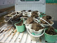 ただ、もともと水田だった場所ではなくそこにバケツ20杯分くらいの粘土入れたのですが、まだまだ足りず、生育がまばらになったり水はけがよすぎたりといった反省点もありました。そこで、それらを次年度に向けて改善すべく、本校教員の自宅休耕田からバケツ50杯分くらいの粘土を再度運び込むとともに、もう一度防水シートを埋設し、改良を加えた新・学校田を作ることにしました。