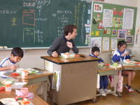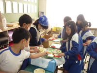3年2組にはALTのJames先生も来て、楽しい雰囲気で食べていました。
