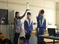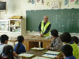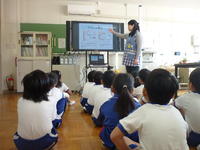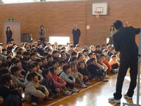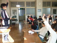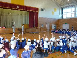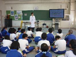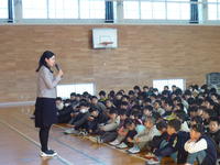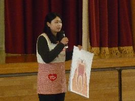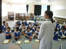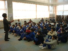 初めに養護教諭からかぜやインフルエンザ予防の保健指導。みんなよく話を聞いています。