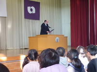始業式。校長先生のから「新年の目標を持って生活する」という話がありました。