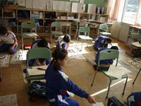 職員室前から元気な声が聞こえたのでのぞいてみると1年生が遊んでいました。