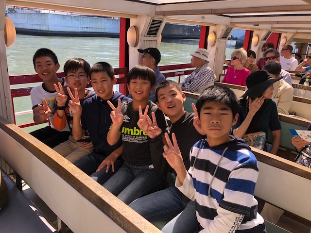 隅田川下り遊覧船に乗船。外国人観光客へ英語で話しかける子もいたそうです。