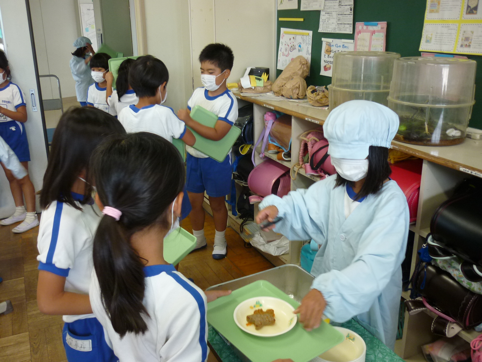 給食を食べている1年生に願い事を聞いてみると「ウルトラマンになりたい!」「ケーキ屋さんになりたい!」「ディズニーランドに行きたい!」という声が。