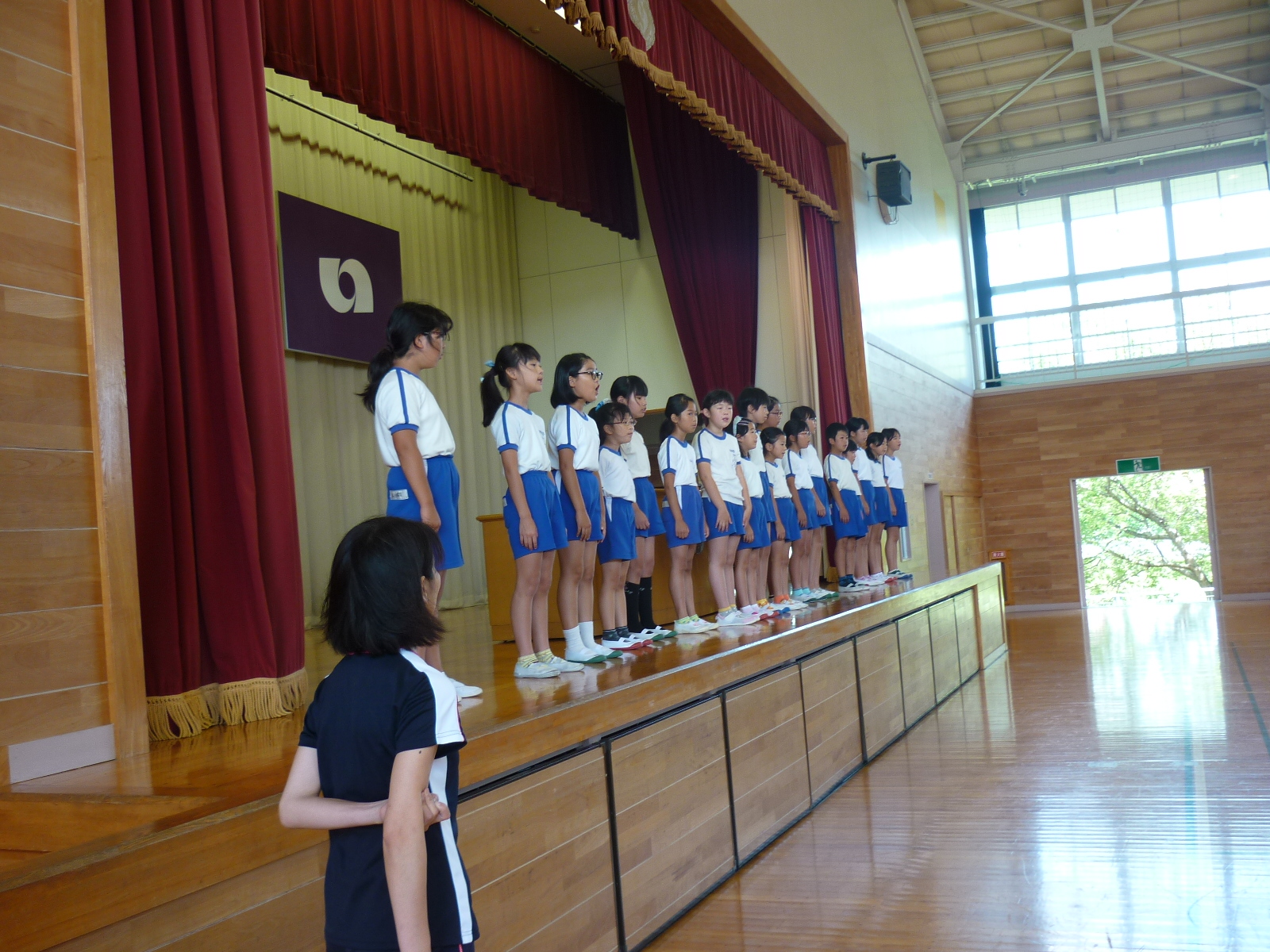 その後は音楽集会。今月の歌は「夏だ」です。合唱部と全校生が歌の掛け合いをしながら楽しく元気に歌うことができました。