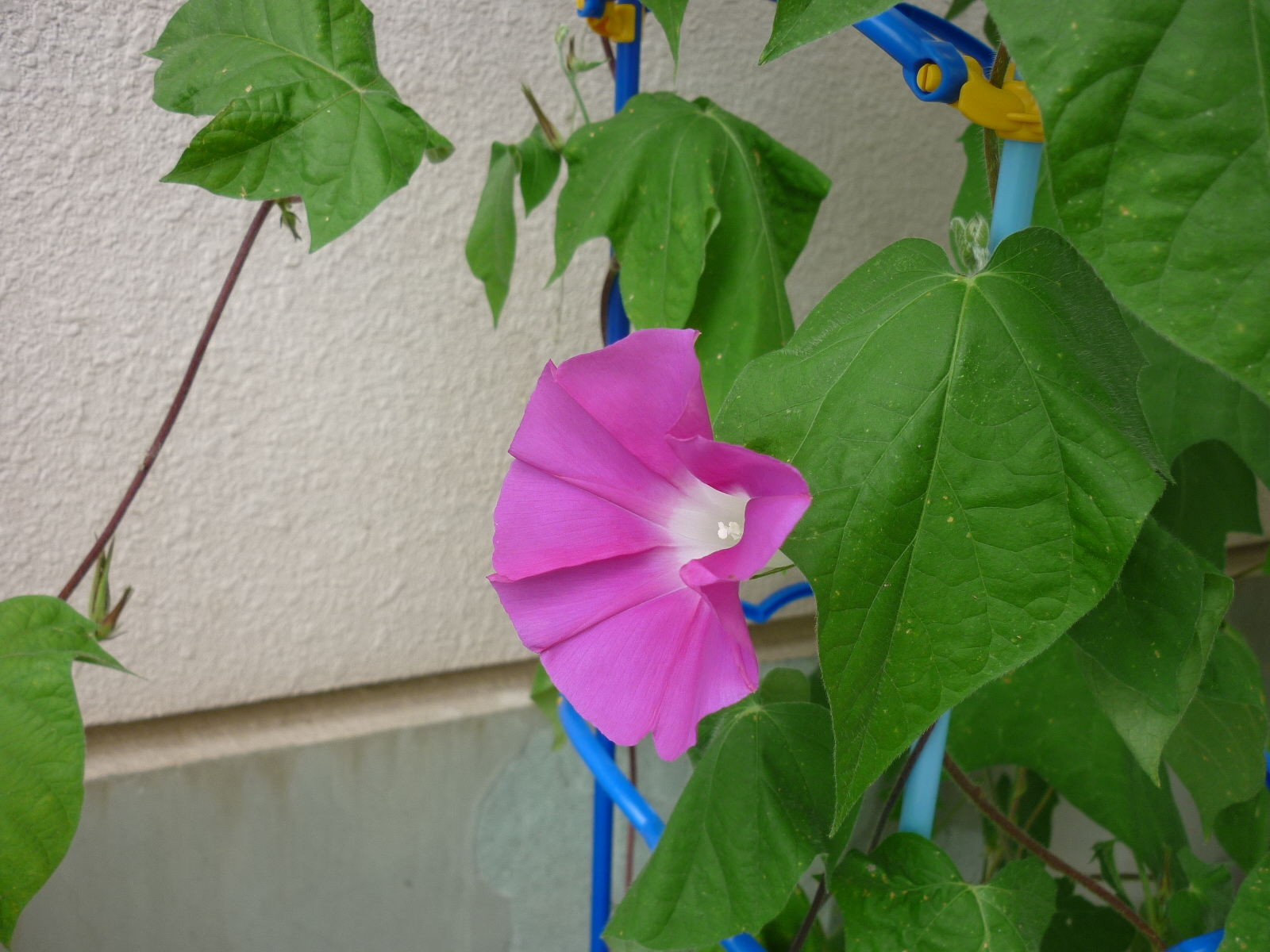 朝、解錠しながら校舎を巡視していると、1年生の育てたアサガオがちらほら咲き始めました。