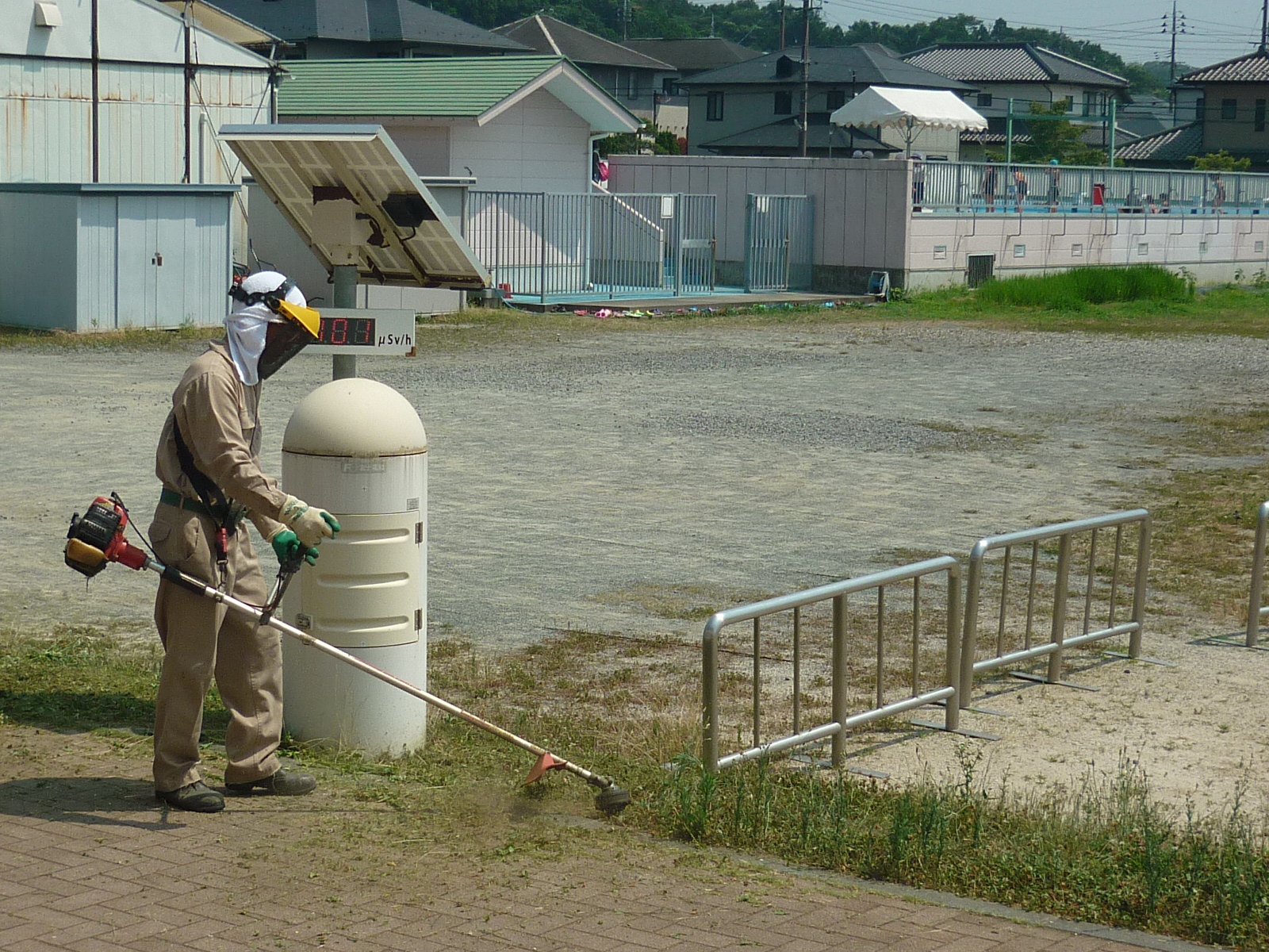 そんな暑さの中でも、用務員さんは完全装備で雑草刈りをしてくださいました。学校はいろいろな方に支えられています。